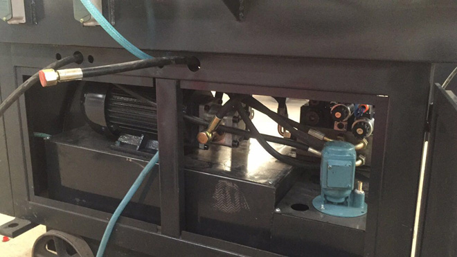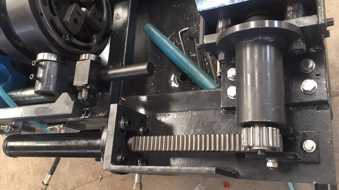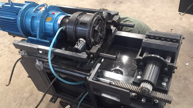 (3)電機(jī)下面新增加油缸推動(dòng)系統(tǒng),使切削剝肋和鋼筋套絲實(shí)現(xiàn)自動(dòng)進(jìn)給,鋼筋套絲工人無(wú)需另行操作