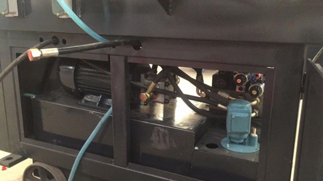 (1)新增加油壓工作站,2.2千瓦電機(jī),油壓換向閥,電磁溢流閥,組成強(qiáng)有力的油壓工作系統(tǒng),為鋼筋滾絲機(jī)的自動(dòng)化剝肋滾絲提供了強(qiáng)有力動(dòng)力供給系統(tǒng),