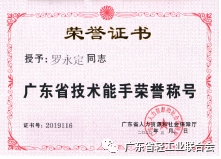熱烈祝賀2019年廣東省職業(yè)技能競(jìng)賽優(yōu)勝選手獲得“廣東省技術(shù)能手”稱號(hào)