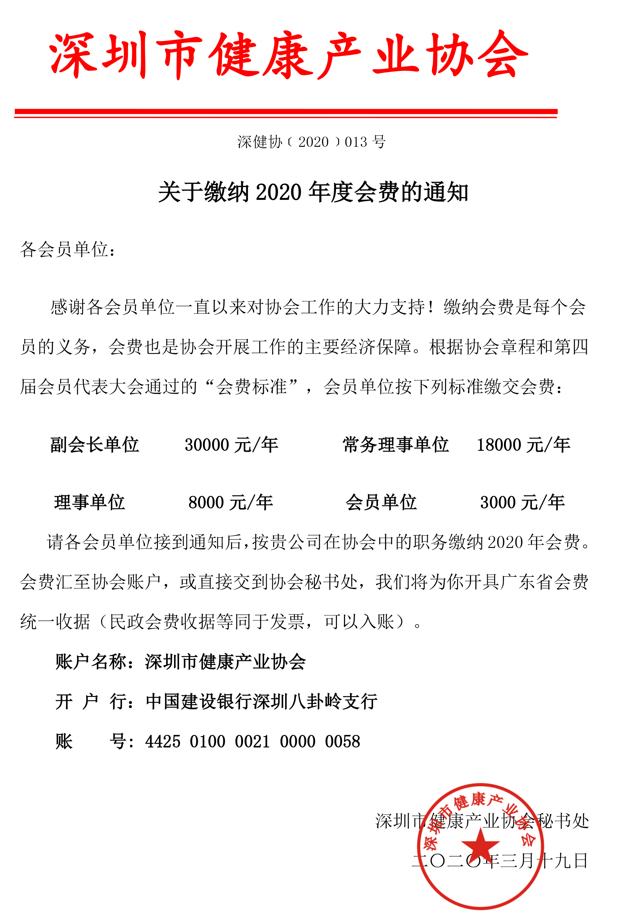 關(guān)于繳納2020年度會費的通知