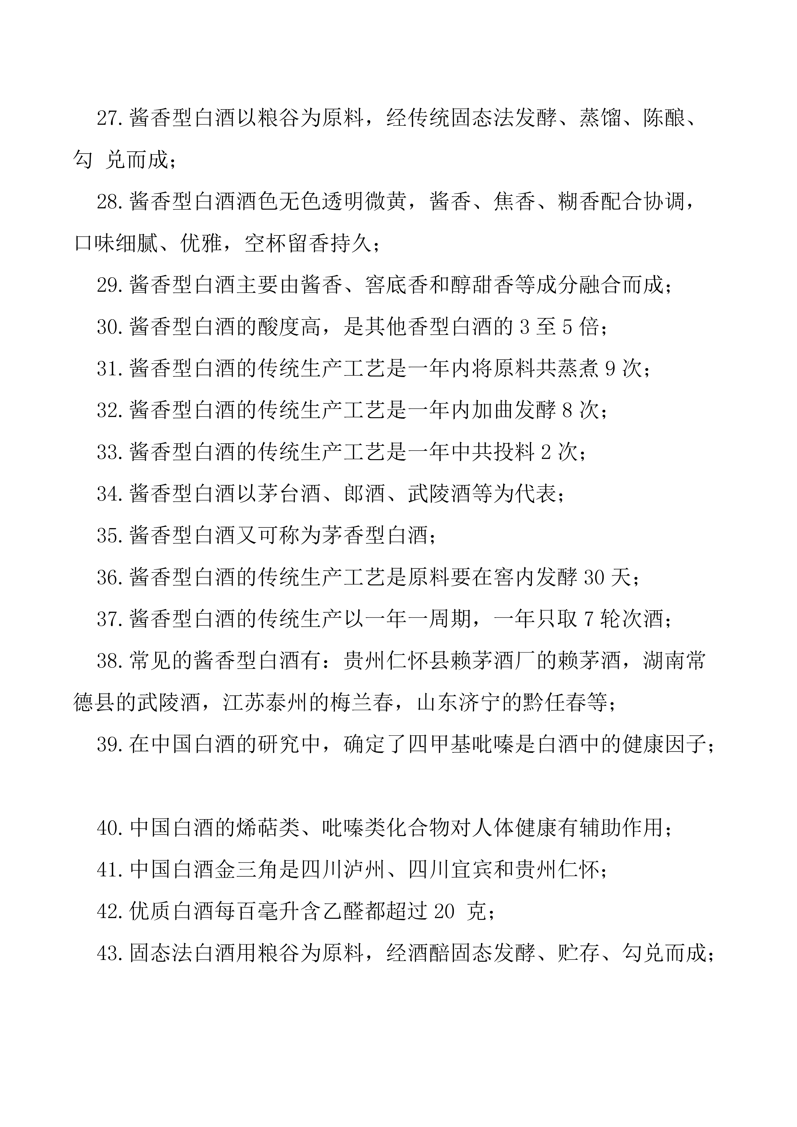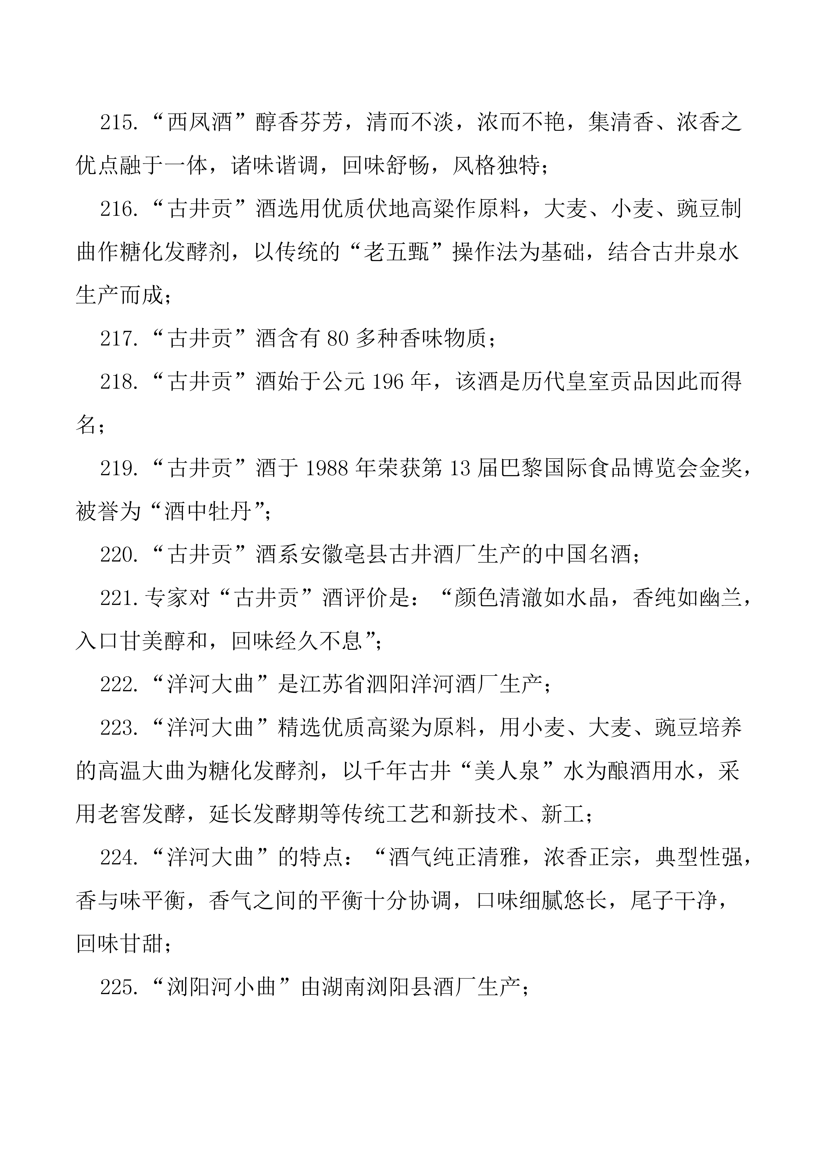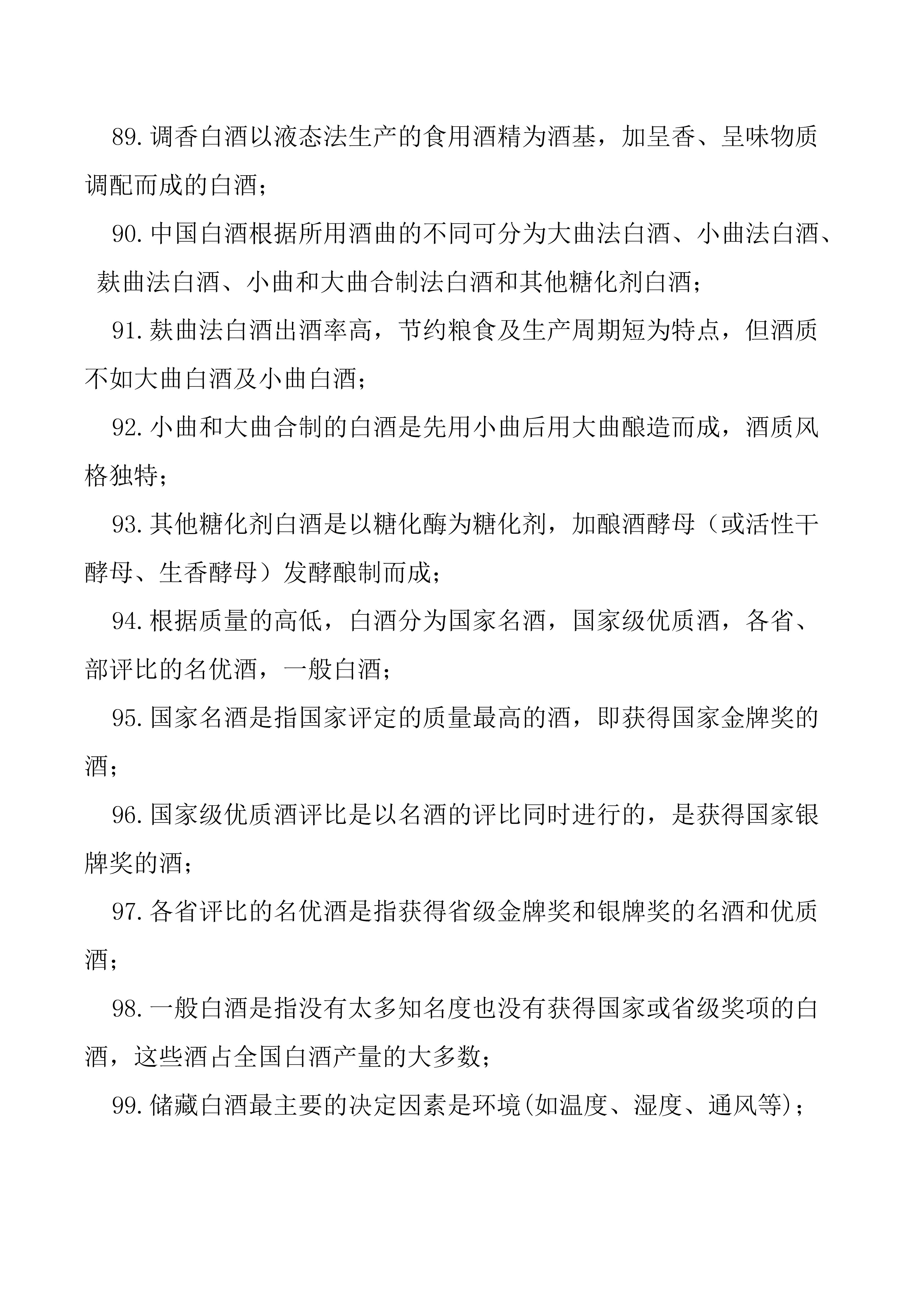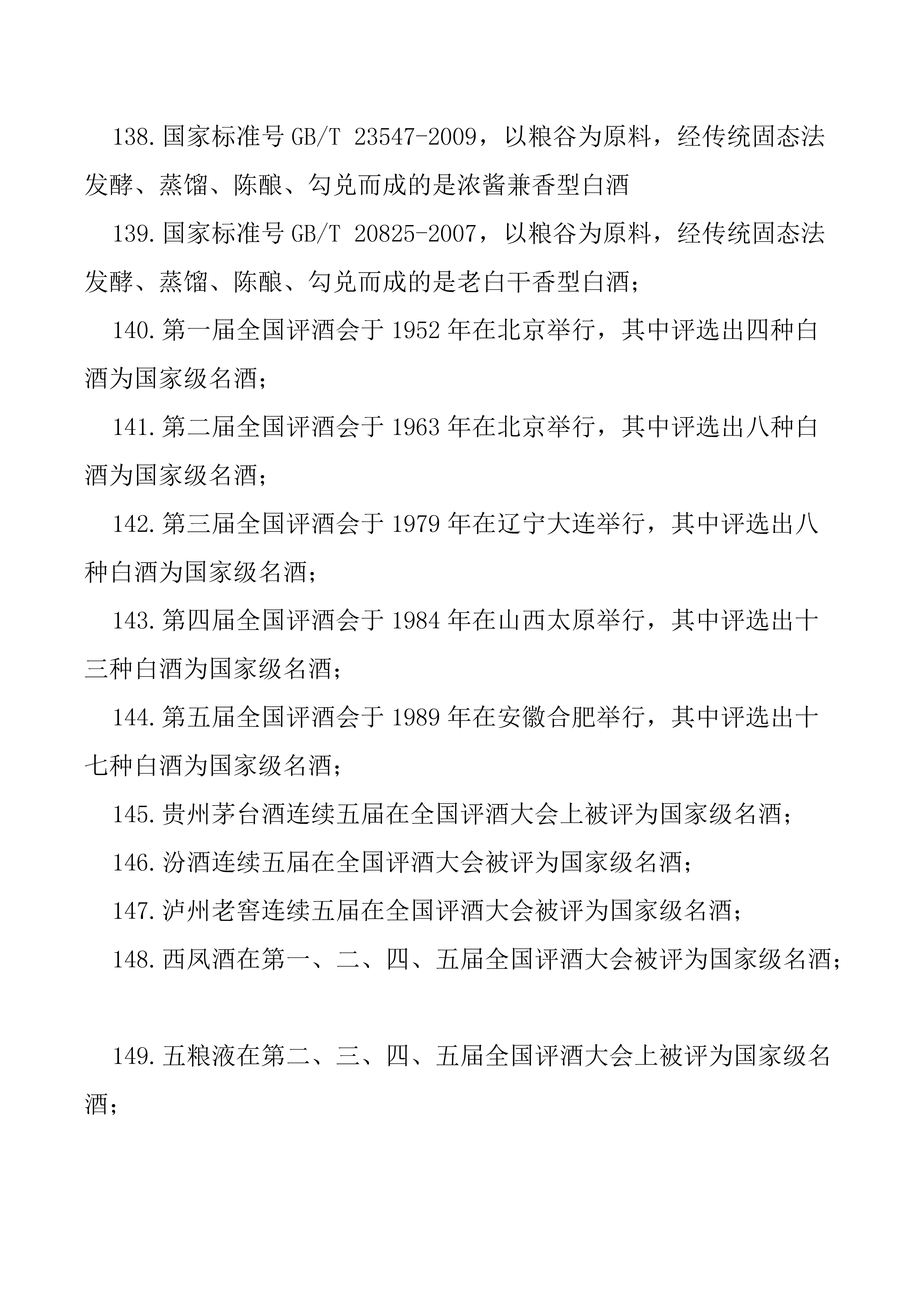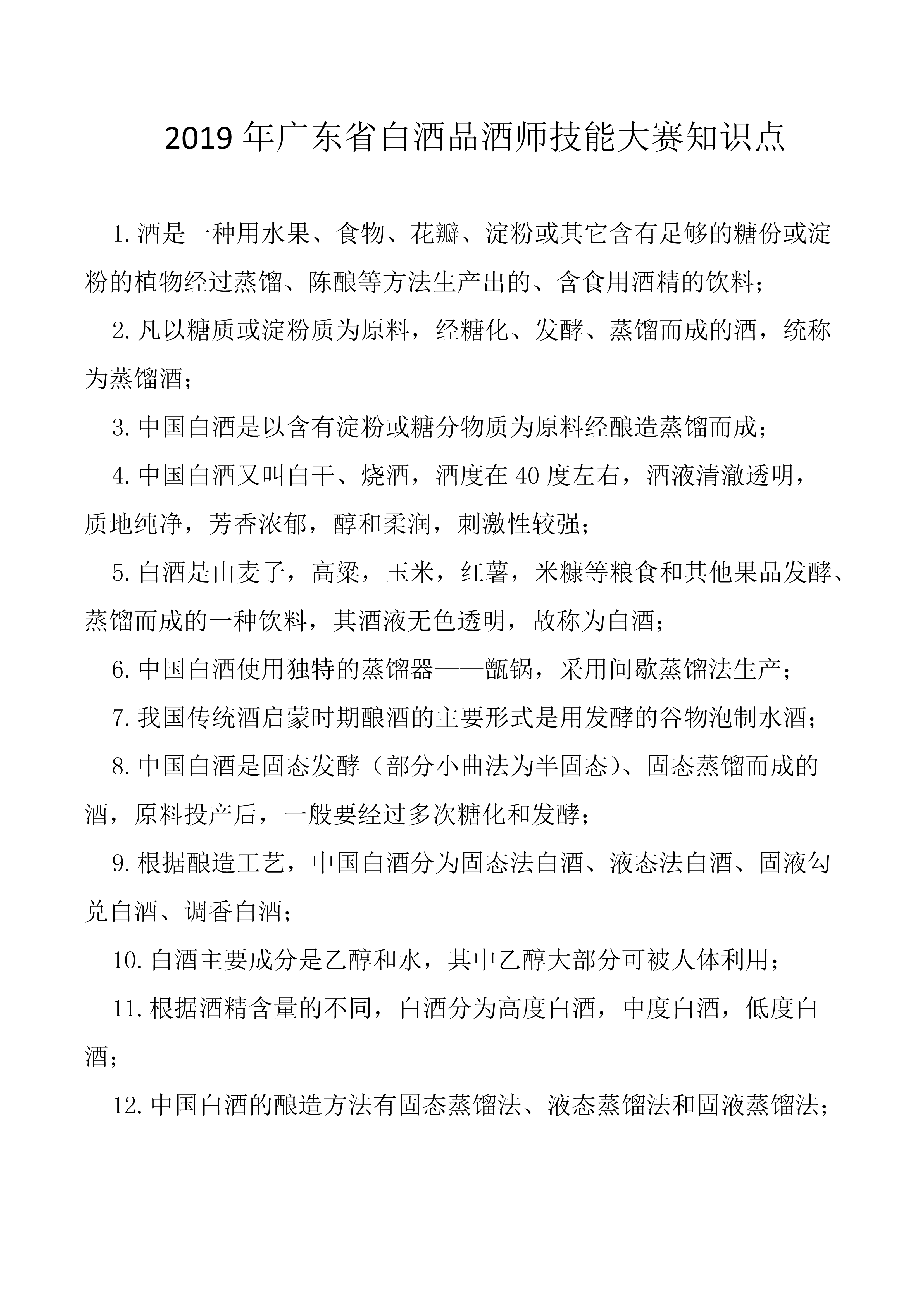2019年廣東省白酒品酒師技能大賽知識點