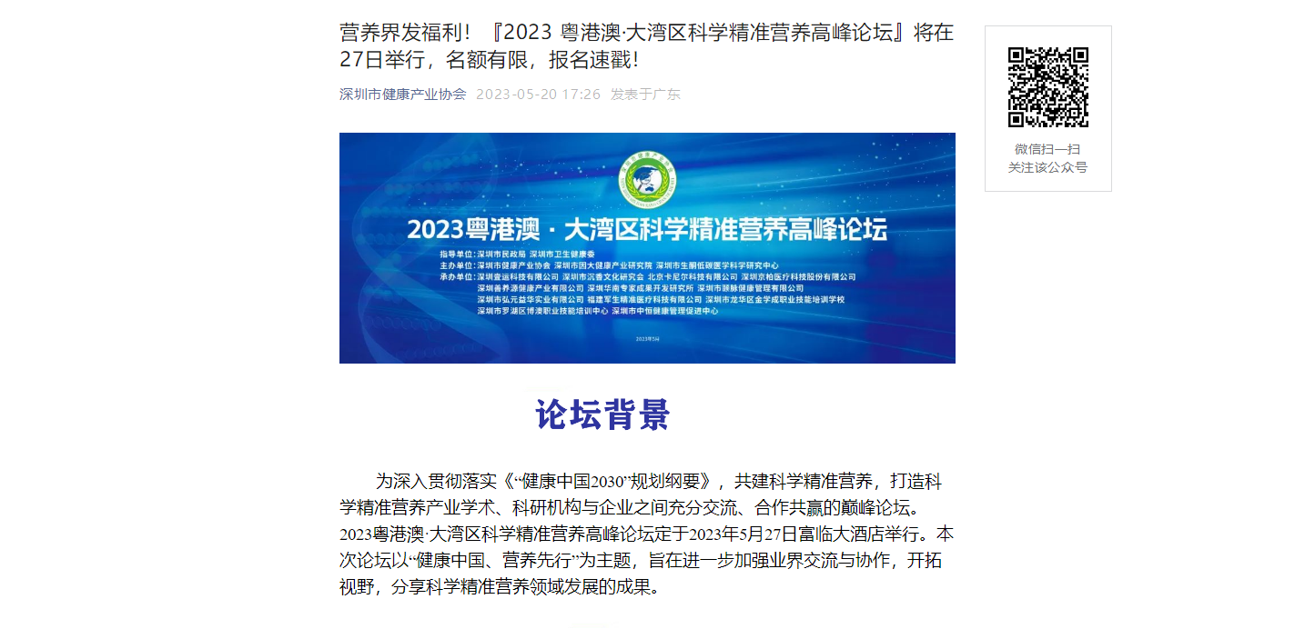 營養(yǎng)界發(fā)福利!『2023 粵港澳·大灣區(qū)科學(xué)精準(zhǔn)營養(yǎng)高峰論壇』將在27日舉行,名